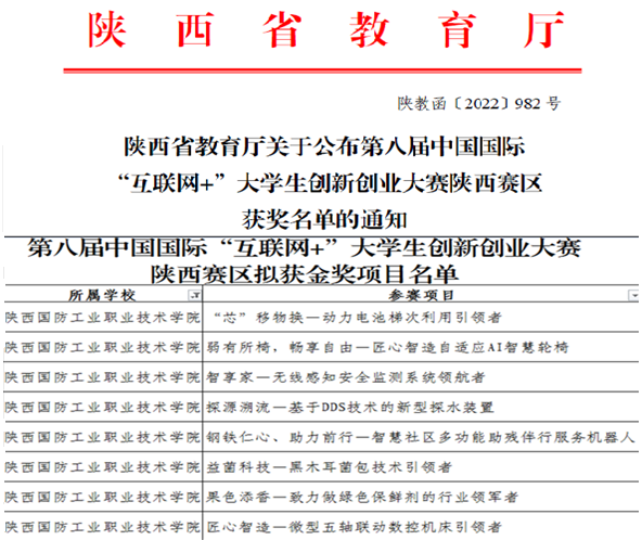 第八届中国国际“互联网+”大学生创新创业大赛以“我敢闯,我会创”为主题,围绕“更中国、更国际、更教育、更全面、更创新”的总体目标,传承和弘扬红色基因,聚焦“五育”融合创新创业教育实践,激发青年学生创新创造热情,线上线下相融合,打造共建共享的创新创业盛会。全国总决赛将于9月份在重庆大学举行。我校汽车工程学院的《“芯”移物换—动力电池梯次利用引领者》、机械工程学院的《匠心智造—微型五轴联动数控机床引领者》两个项目已入围全国总决赛。