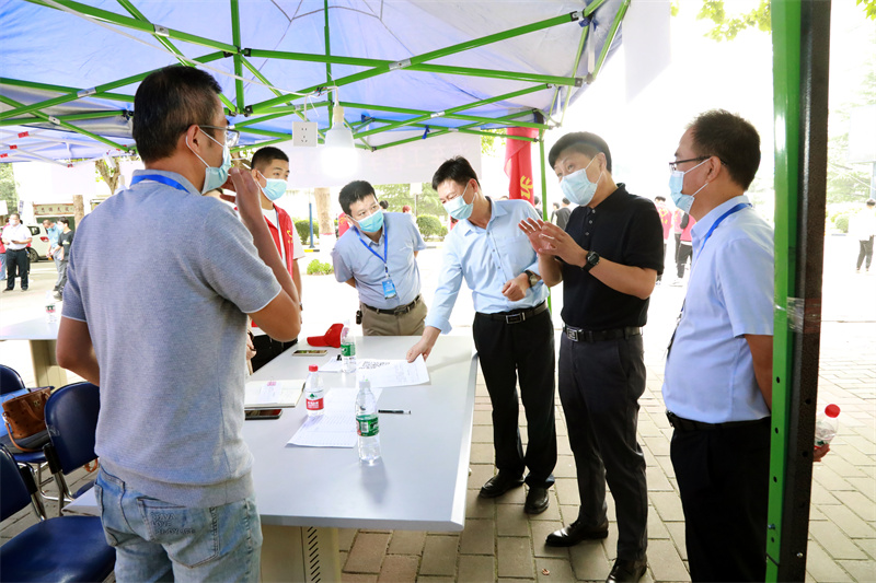 新生报到期间,校领导一行依次来到迎新报到点、学生公寓、食堂等地,亲切慰问辛勤忙碌的迎新工作人员,与他们一同迎接2022级新生与的到来。他们要求全体工作人员要严格落实该校疫情防控各项要求,确保新生的健康安全,同时做好志愿服务工作,为新生提供周到满意的服务。并且勉励同学们要尽快适应大学生活,脚踏实地、珍惜时光,锤炼过硬本领,努力成长为堪当重任的栋梁之才。