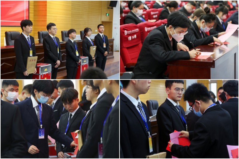 正式选举环节,大会听取审议并通过了《18新利苹果客户端学生会章程》。会上,来自11个代表团的青年学生按照选举办法代表广大学生行使权利,选举产生了由沈国庆等5人组成的第九届学生会主席团,由王何庆等18人组成的第九届学代会常任代表。