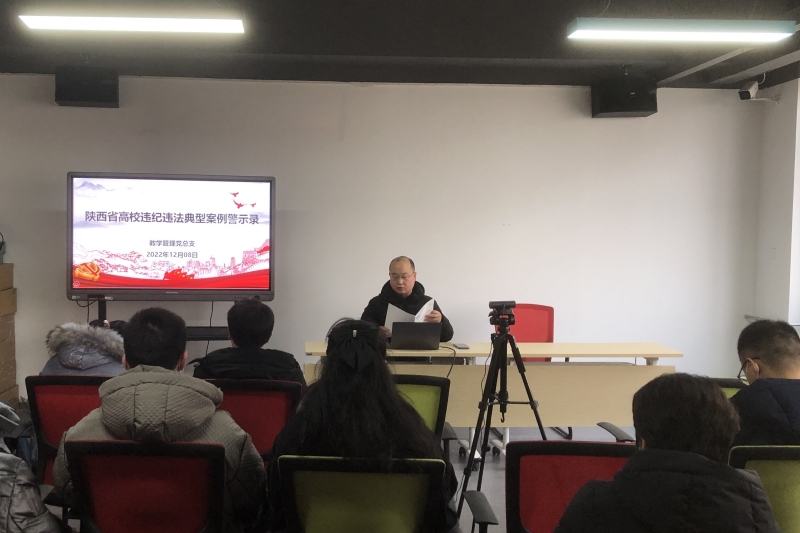 会上,冉宪宇同志领学了《十九大以来陕西省高校违纪违法典型案例警示录》十二月份学习内容,用案例警示大家做遵纪守法的公民。李璐同志领学了《习近平谈治国理政》第四卷③:答好“时代之问”,引导教职工要深入把握我们党对构建人类命运共同体、共建美好世界的最新贡献。