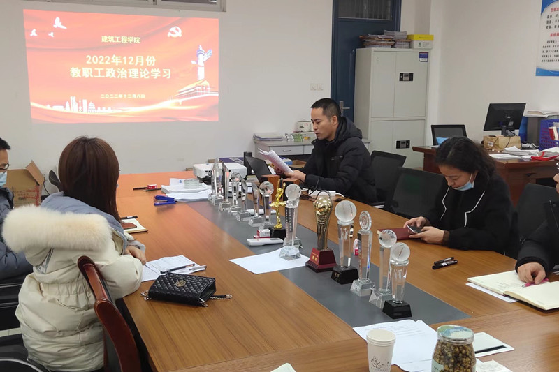 【建筑工程学院党总支】按照陕国职党宣〔2022〕29号文件《关于2022年12月教职工政治理论学习暨组织活动安排的通知》要求,建筑工程学院于2022年12月8日下午在教4-240召开了本月教职工政治理论学习会议。由于疫情原因,会议采用线上与线下相结合的方式开展。党总支书记强卫印主持会议,全体教职工参加会议。