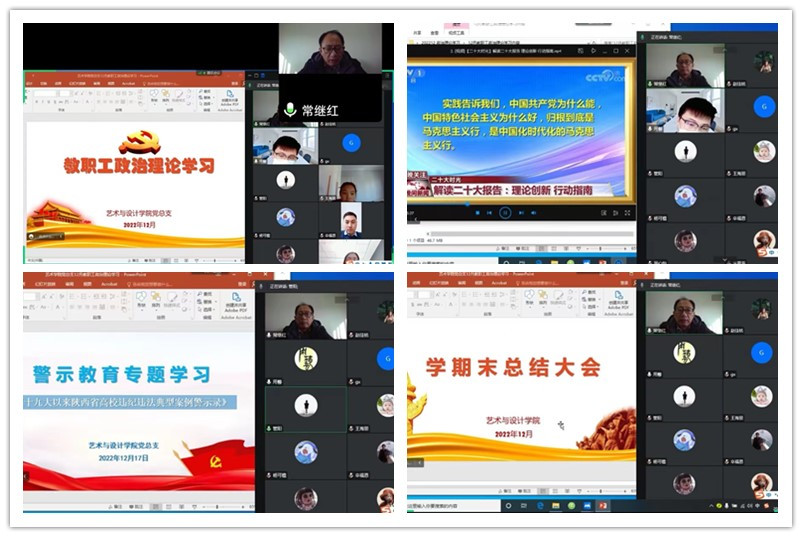 【艺术与设计学院党总支】根据学校《陕国职党宣〔2022〕29号:关于2022年12月教职工政治理论学习暨组织活动安排的通知》文件要求,艺术与设计学院党总支于12月17日通过腾讯会议在线上开展了2022年12月份线上政治理论学习,会议由党总支书记常继红主持,全体教职工参加此次学习。