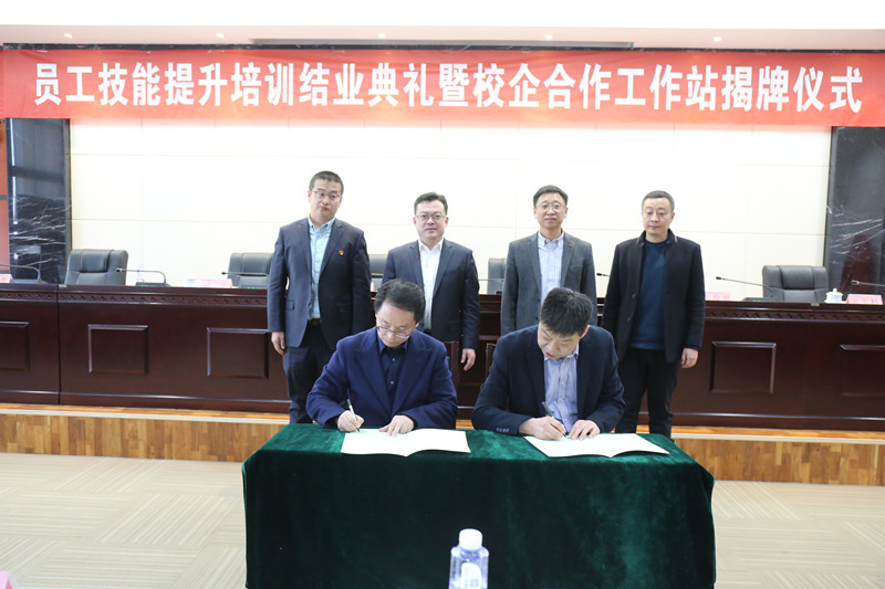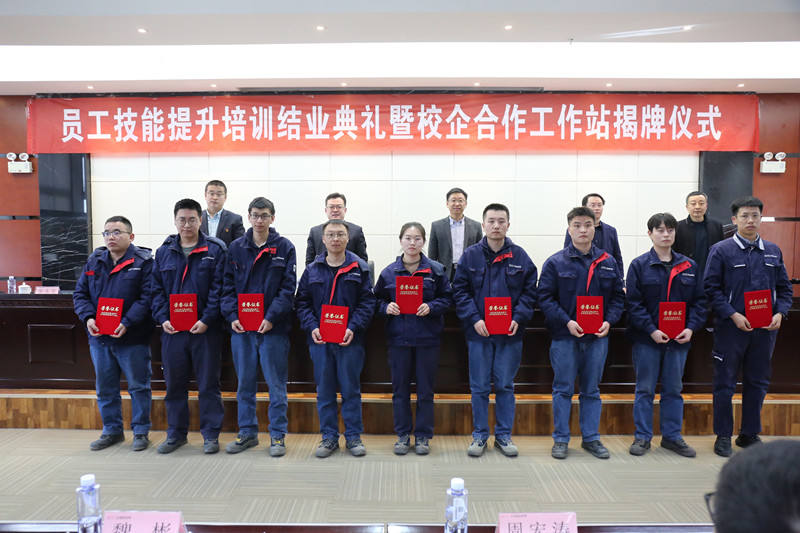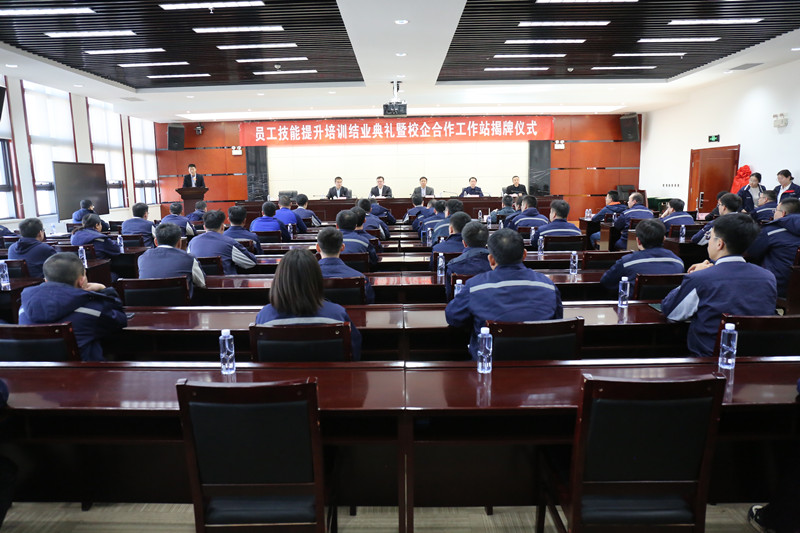 3月7日,由我校和陕西有色天宏瑞科硅材料有限责任公司举办的员工操作知识和技能提升项目结业典礼暨校企合作工作站授牌仪式在天瑞公司会议室举行。公司总经理苏旭盛、副总经理徐岩、我校副校长孟繁增出席会议。我校校企合作处、化工学院相关负责人及培训教师、公司各部门负责人及学员代表参加了本次活动。仪式由天瑞公司人力资源部主任张永亮主持。
