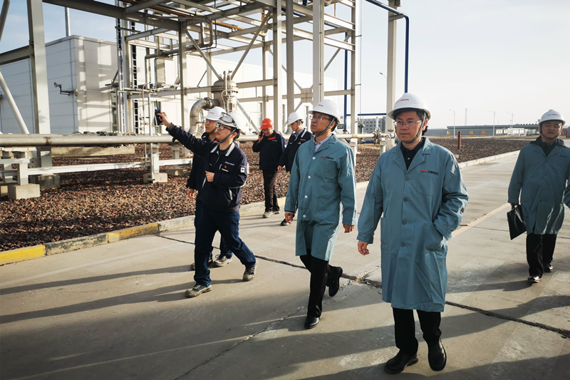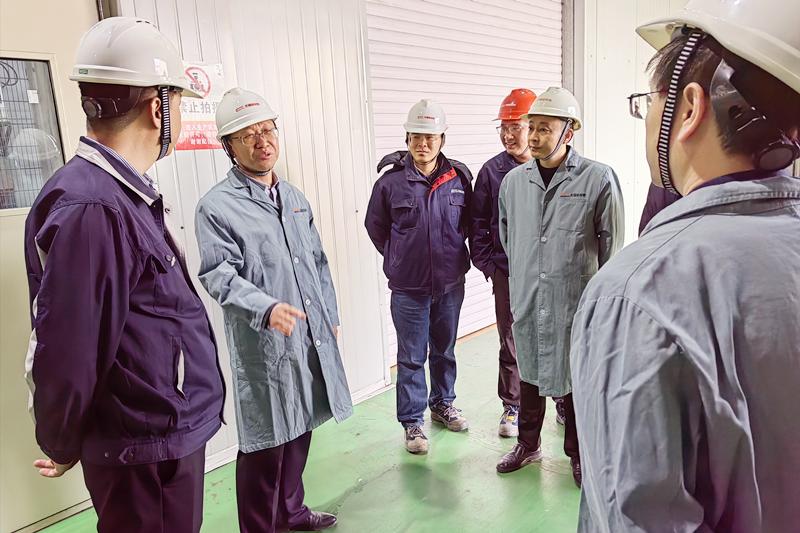 在张永亮和我校毕业生的陪同下,孟繁增等一行人参观了天瑞公司生产区。