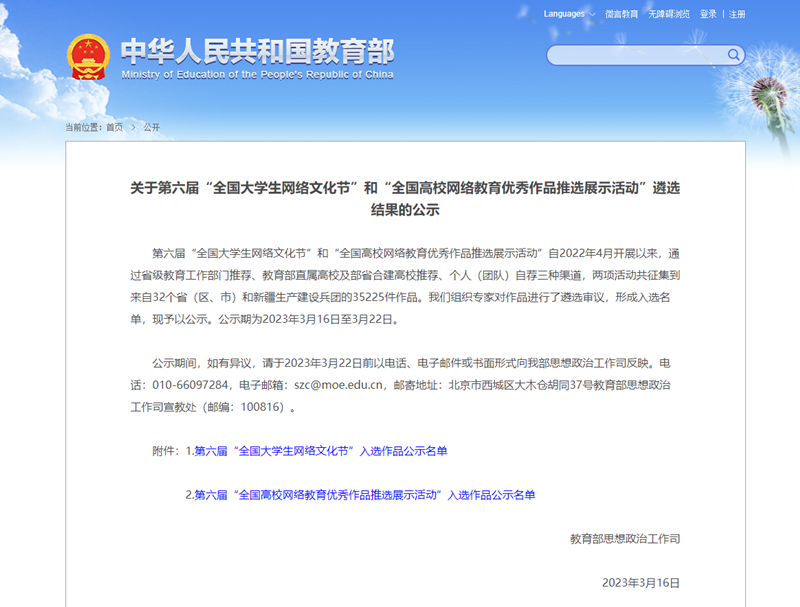 “全国高校网络教育优秀作品推选展示活动”和“全国大学生网络文化节”是教育部、中央网信办联合主办的网络思政领域的代表性活动。