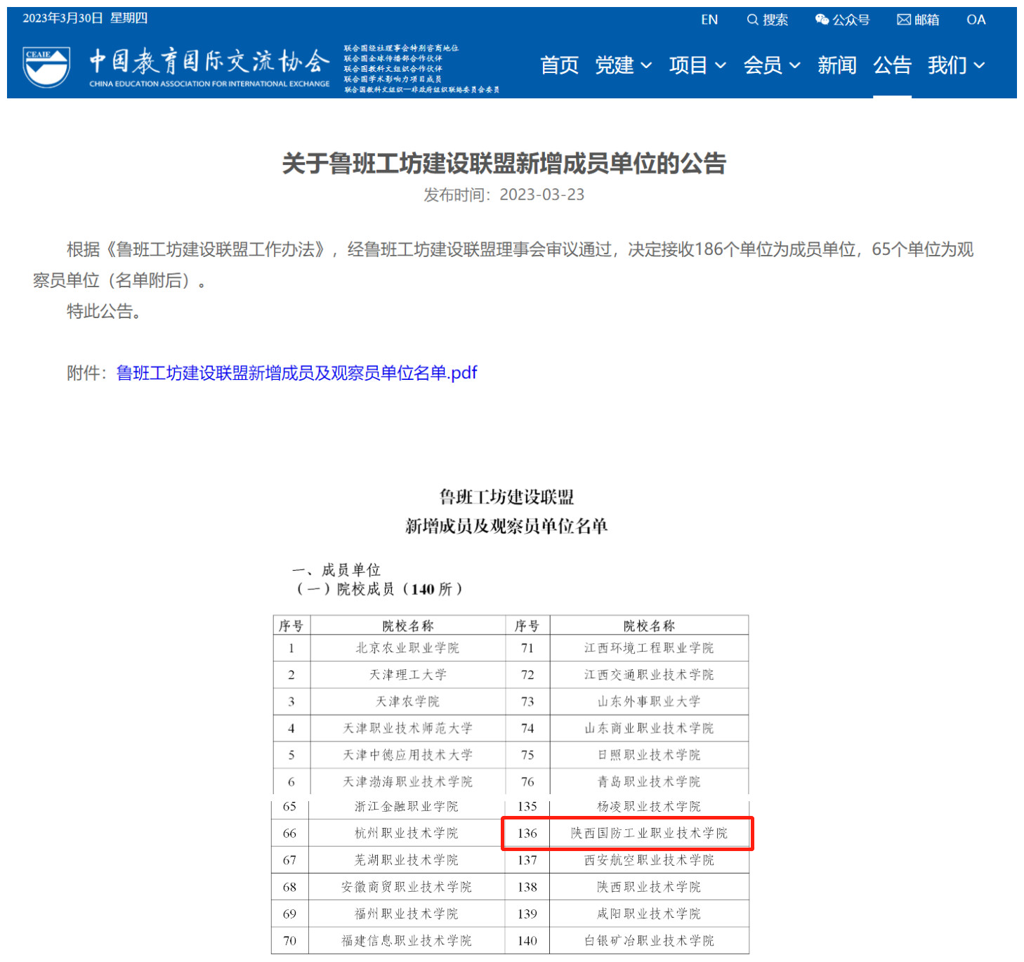 根据中国教育国际交流协会《关于邀请加入鲁班工坊建设联盟的函》(际协便【2022】319号)文件要求,我校积极开展申报工作。3月23日,接中国教育国际交流协会通知,经鲁班工坊建设联盟理事会审议通过,我校从全国百余家院校中脱颖而出,顺利入选联盟成员单位。