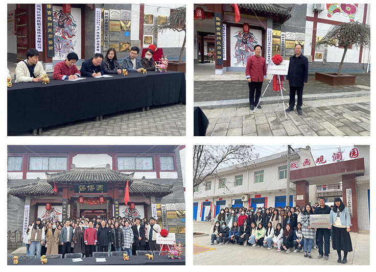 为继承和弘扬中华民族优秀传统文化,加强非物质文化遗产的传承保护,进一步提高大学生的艺术素养和文化底蕴,4月4日上午,党委副书记杨聪、艺术与设计学院院长相关负责人等一行赴宝鸡市凤翔区国家非遗基地参观考察,与凤翔区西府民俗艺博园、南小里村木版年画传习所举行非遗传承实践教育基地签约及揭牌仪式。