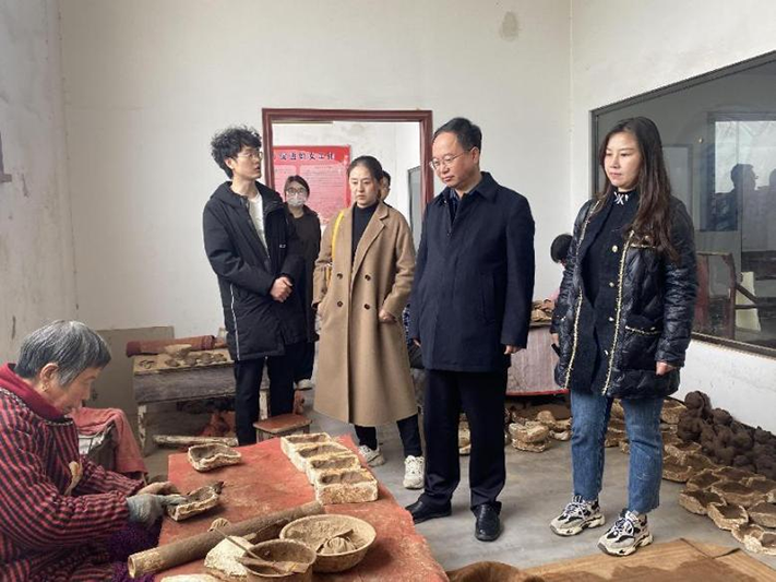 在宝鸡市凤翔区驻村工作队第一书记郑亚辉、六营村党支部书记廖卫军的陪同下,杨聪一行参观了凤翔泥塑博物馆、凤翔木版年画的传习所。期间,国家非物质文化遗产传承人胡新明、邰伟伟分别介绍了凤翔泥塑、木版年画的厚重历史、制作过程和特色工艺。