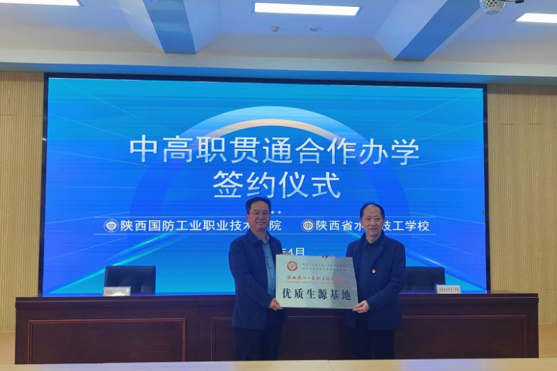 丁相锋与我校人工智能学院院长姜鑫代表两校签署了中高职衔接人才贯通培养协议。杨聪代表我校为陕西省水利技工学校授牌,为两校今后进一步深度合作打下了基础,相信两校会在职业教育发展过程中定会优势互补,为中职学生提供接受更高层次教育、学习更专业技能的机会,走出更符合两校特色的中高职衔接人才贯通培养新路子。