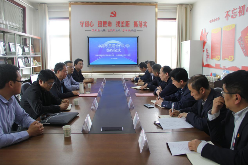 4月11日下午,18新利苹果客户端“中高职贯通合作办学”签约仪式在陕西省水利技工学校举行。陕西省水利技工学校党委书记、校长毛兴中、副校长丁相锋、校办公室主任周星、招生与学生管理办公室主任张强及相关负责人员出席会议。我校党委副书记杨聪、人工智能学院相关教师参加了签约仪式。签约仪式由陕西省水利技工学校党委书记、校长毛兴中主持。