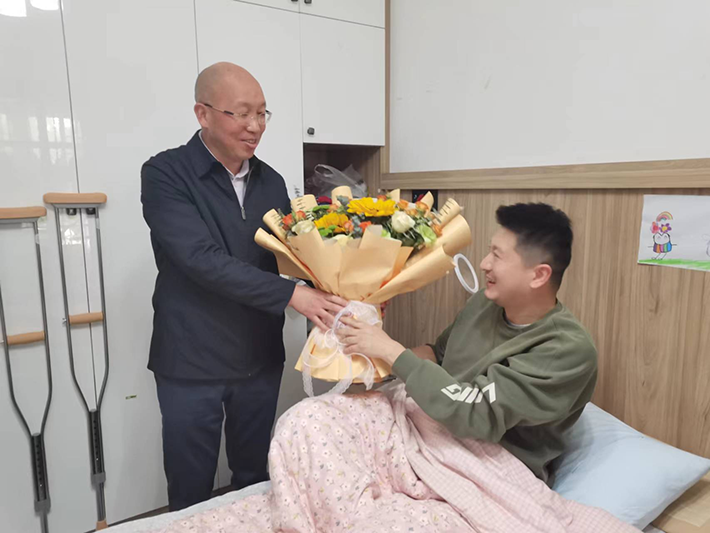 2023年4月13日上午,刘少阳副校长带领校工会、党政办公室、艺术与设计学院相关负责人,看望慰问了艺术与设计学院教师房强。房强为我校选派赴商洛市山阳县职教中心开展帮扶工作的骨干教师,因代表山阳县职教中心参加陕西省首届“延长石油杯”教师三人篮球联赛时意外扭伤导致前交叉韧带断裂,现处于术后恢复期。