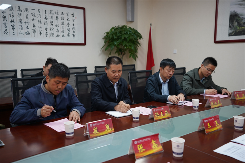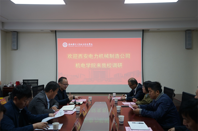 王玉首先代表学校对西安电力机械制造公司机电学院一行来访我校表示欢迎,简要介绍了学校历史、办学特色等。孙占亚对我校的热情接待表示感谢,介绍了西安电力机械制造公司机电学院的基本情况,充分肯定了我校办学成效。