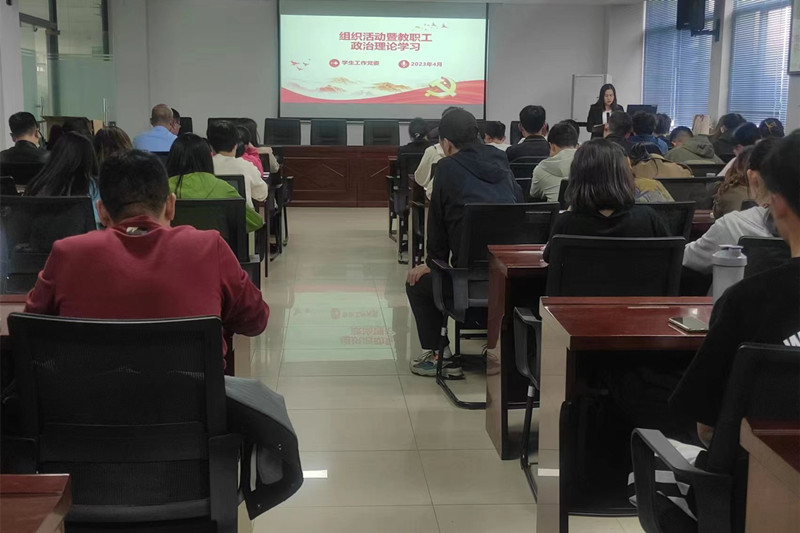 【基础课党总支】根据陕国职党宣〔2023〕2号文件《关于2023年4月教职工政治理论学习暨组织活动安排的通知》相关要求,为进一步加强基础教职工政治理论学习,切实提高教职工政治素质和理论水平,基础课党总支于2023年4月6日在北区5-604语音室开展4月教职工政治理论学习,会议由党总支书记权华主持。