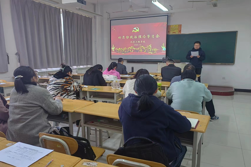 【化工学院党总支】4月6日下午,化学工程学院党总支在4-440召开四月份政治理论学习会,全体教职工参加了本次会议,会议由党总支书记孟龙主持。