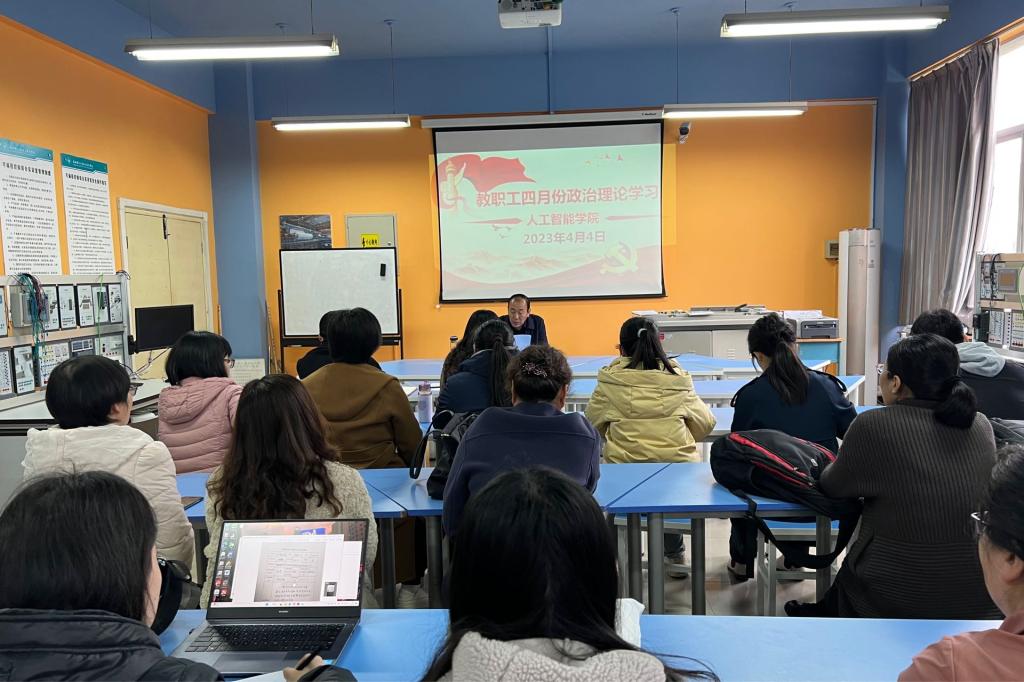 【人工智能学院党总支】为深入学习贯彻落实党的二十大精神和全国两会精神,贯彻落实习近平总书记关于教育的重要论述精神,贯彻落实党的教育方针,不断提高教职工思想政治理论水平,4月4日下午,人工智能学院于8-208开展了4月份教职工政治理论学习。人工智能学院党总支书记张双琦、院长姜鑫以及全体教职工参加了本次会议。