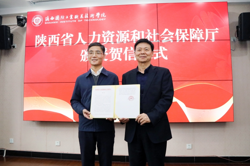 4月24日,陕西省人力资源和社会保障厅职业技能鉴定指导中心主任孟庆明、部长邓小峰莅临我校颁授贺信,表彰学校在全国服务型制造应用技术技能大赛代表陕西省取得的优异成绩,党委书记张卫平、校长刘敏涵、副校长孟繁增、获奖选手和教练、校企合作处、人工智能学院主要负责人参加了颁授贺信仪式,仪式由副校长孟繁增主持。