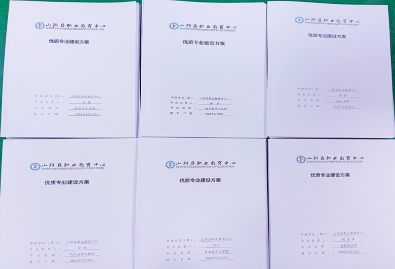 为提升省内中等职业教育办学质量和专业水平,在我省开展第二轮省级高水平示范性中等职业学校和示范专业建设的基础上,开展实施国家优质中等职业学校和优质专业建设计划(以下简称“双优计划”建设),同步开展向国家推荐优质中等职业学校和优质转业的遴选工作。山阳县职业教育中心接到省上文件之后,成立专项小组,由专业发展中心组织开展。