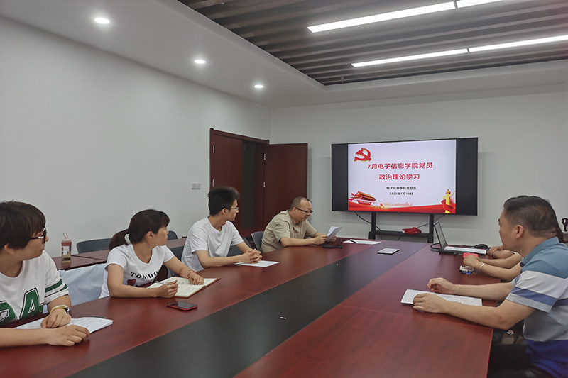【电子信息学院党总支】根据陕国职党宣〔2023〕10号文件《关于2023年7月党员政治理论学习安排的通知》的要求,7月13日下午,电子信息学院党总支在博远楼602召开了7月份党员政治理论学习会议,会议由党总支书记赵鹏主持。