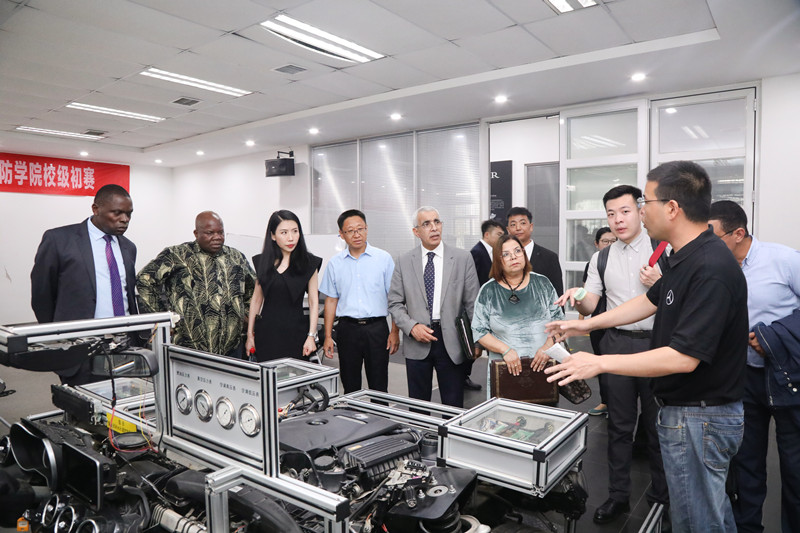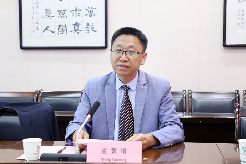 孟繁增围绕我校海外办学实践、服务“一带一路”倡议以及构建中非职教命运共同体等8个方面详细介绍了我校国际交流工作。他表示双方可以在新能源汽车、人工智能、智能制造、信息技术等领域开展多方面、多层次的交流合作,共同打造中津、中摩“鲁班工坊”“秦岭工坊”。