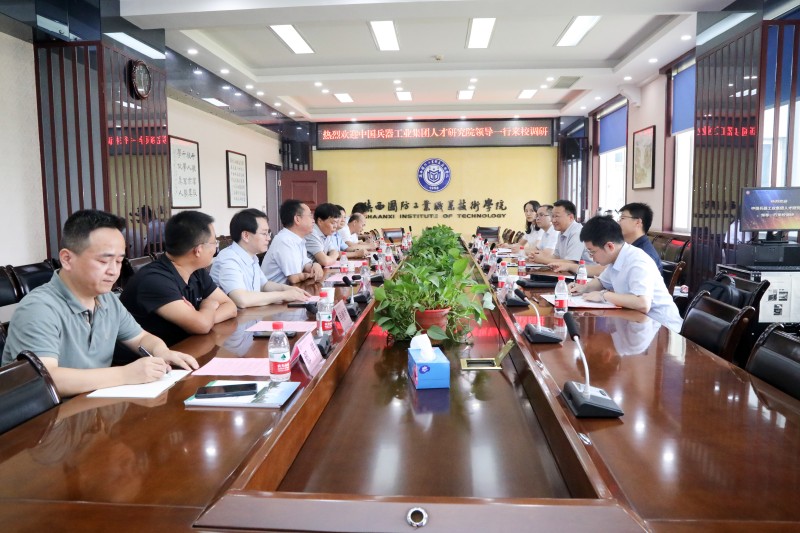 8月24日,中国兵器工业集团人才研究院主持日常行政工作副院长杨国顺、先进制造教研部部长孙汉中,北方至信技术业务总监乐浩、职业教育业务总监牛振启,中国兵器工业集团试验院人力资源部经理徐艳等一行来我校调研交流。我校校长刘敏涵、校企合作处、教务处、继续教育与培训学院、智能制造学院、化学工程学院负责人及相关教师出席会议。双方在行业产教融合共同体建设和校企合作等方面进行了深入沟通。会议由校党委副书记杨聪主持。