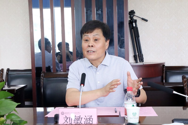 刘敏涵致欢迎辞。他回顾了学校的办学历程,代表学校感谢中国兵器工业集团长期以来对学校办学的支持和关心。随后他向与会领导简要介绍了学校近年来在产教融合方面取得的成效,希望在中国兵器工业集团人才研究院的大力支持下,双方能够精诚合作,携手同行做好兵器行业产教融合共同体的建设工作,为更深入的开展校企合作,更好的服务国防军工事业发展,做出新的贡献。
