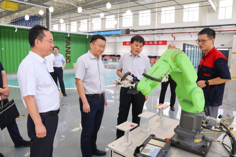 会前,中国兵器工业集团人才研究院领导一行参观了我校国防科技展馆、智能制造、戴姆勒等实训基地。