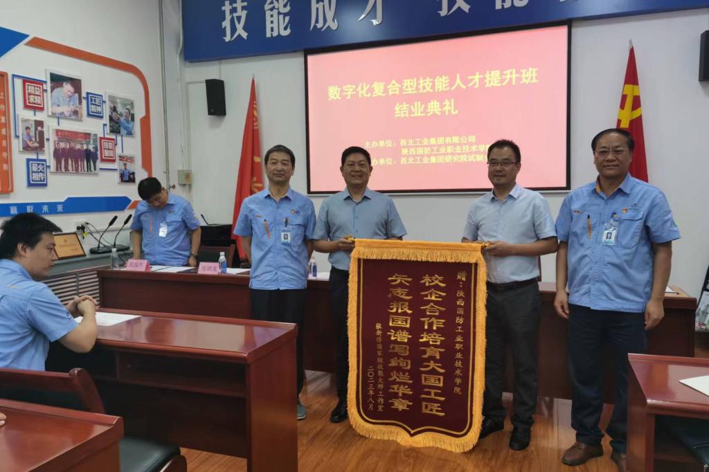 8月23日上午,我校与西北工业集团有限公司联合开展的企业新型学徒制培训班(数字化复合型技能人才提升班)结业典礼在张新停技能大师工作室举行。中国兵器动能毁伤研究院副院长王议论、试制厂厂长段战军、副厂长薛军,我校副校长张永军、智能制造学院相关负责人、授课教师代表以及新型学徒制学员共同参加结业典礼仪式。会议由西北工业集团有限公司人事部党支部书记张培龙主持。