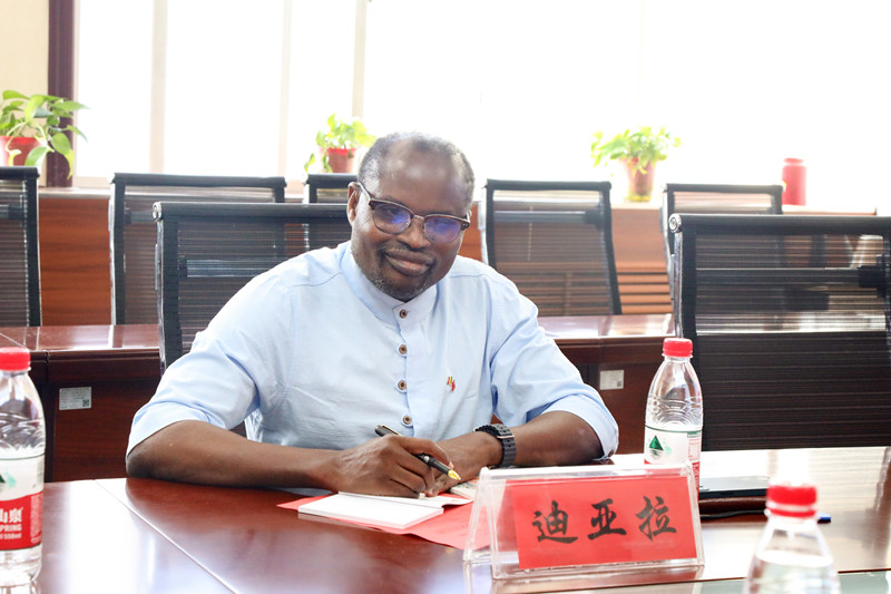 与会人员观看了我校宣传片。刘敏涵代表学校对迪亚拉副主席一行的到来表示热烈欢迎,并简要介绍了我校基本情况以及同非洲的交流合作项目。他指出,中国和马里于1960年建交,60多年来,双方务实合作硕果累累,中马友谊大桥贯通南北两岸、卡巴拉大学城书声琅琅,阿斯基亚中学孔子课堂、巴马科人文大学孔子学院、职业培训中心和“鲁班工坊”相继成立,汉语已正式列入国家教学计划大纲,为我们双方的教育合作打下了坚实的基础。