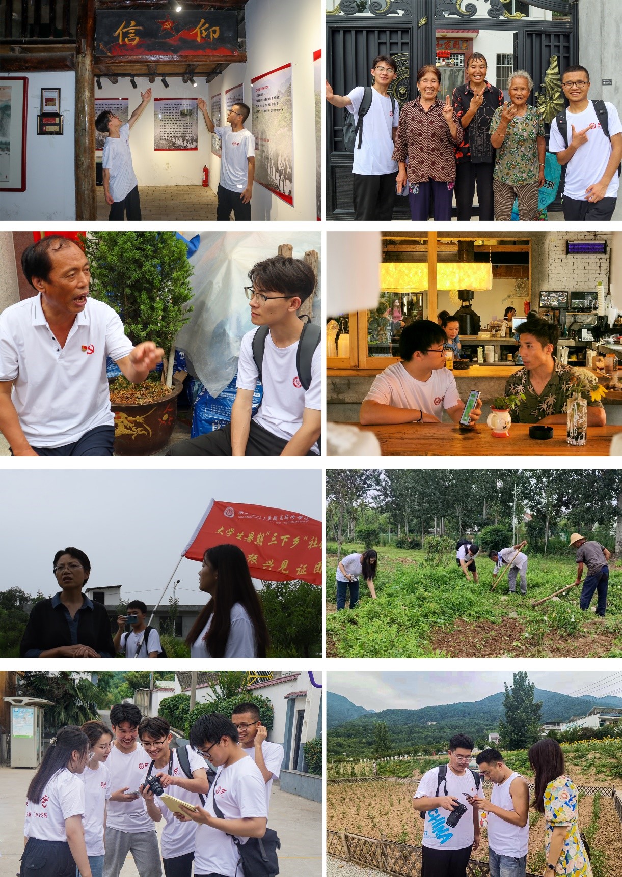 团队成员在栗峪口村参观红军过境户县陈列馆采访游客、村民、咖啡馆负责人等 拍摄分享笑脸