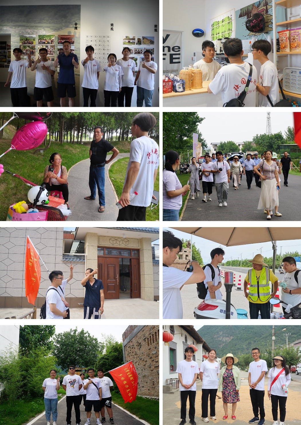 团队成员在蔡家坡村参观村史馆、采访返乡创业青年、游客、村民等人 拍摄分享笑脸