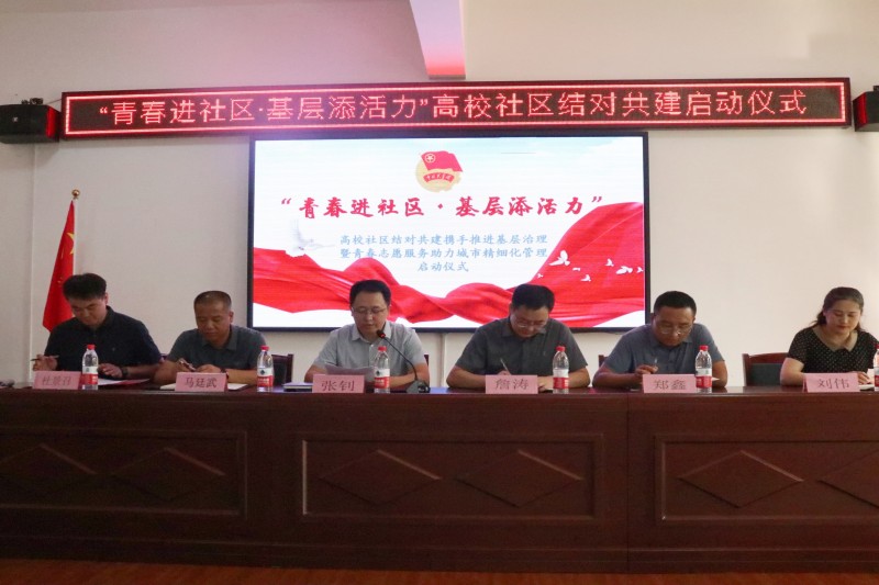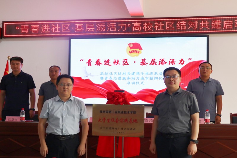 会上,校团委张钊书记宣读了《深化推进“大学生社区实践计划”工作方案》,张钊和詹涛为“大学生社会实践基地”揭牌,各二级分院与社区进行结对签约。余下街道热电厂社区书记代表社区发言,我校机械工程学院蒋栩杨代表志愿者表态发言。