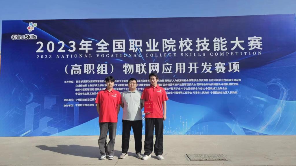 9月12日,2023年全国职业院校技能大赛高职组“物联网应用开发”赛项在宁夏职业技术学院举行,来自全国30个省(市)自治区59支代表队的118名选手参加了比赛。我校人工智能学院物联网应用技术专业高海飞、李盼坤两名学生代表陕西省参赛,经过6.5小时的激烈角逐,参赛选手沉着应对、默契配合、协同作战,最终荣获了团体三等奖。