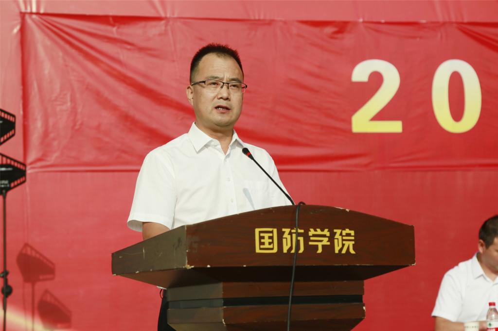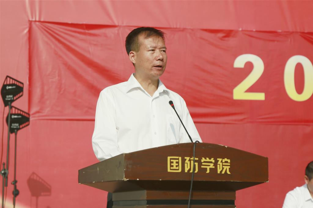 副校长张永军致辞,张永军首先对承担本次军训任务的老师和教官们表示感谢,随后提出了三点要求,首先是对全体参训学员提出要提高认识,端正态度,全力以赴完成军事训练任务的要求。其次是对全体工作人员提出要履职尽责,严守纪律,扎扎实实的做好本职工作的要求。接着对全体教官提出要加强统筹,注意安全,遵守训练规定的要求。最后希望全体同志们充分发挥特别能吃苦。特别能战斗,特别能奉献,特别能团结的革命精神,认真圆满的完成本次军训任务。