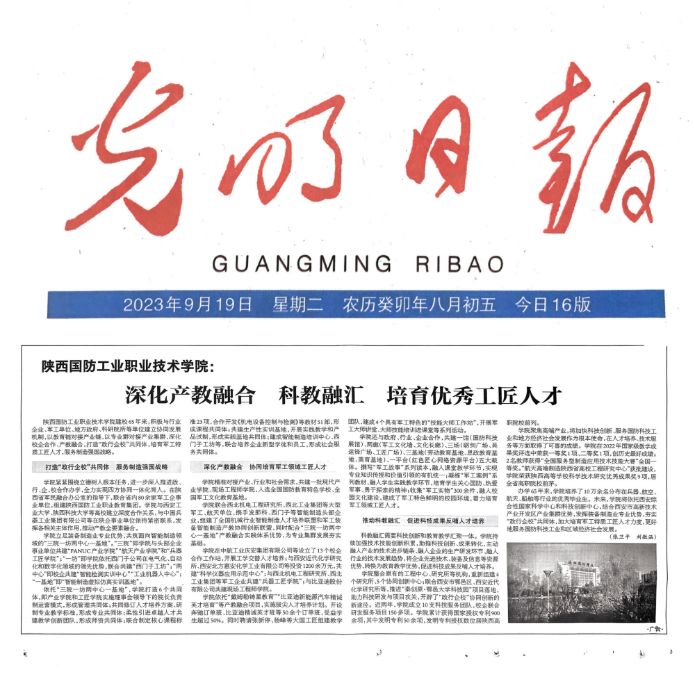 办学65年来,学院培养了10万余名分布在兵器、航空、航天、船舶等行业的优秀毕业生。未来,学院将依托西安综合性国家科学中心和科技创新中心,结合西安市高新技术产业开发区产业集群优势,发挥装备制造业专业优势,夯实“政行企校”共同体,加大培育军工特质工匠人才力度,更好地服务国防科技工业和区域经济社会发展。