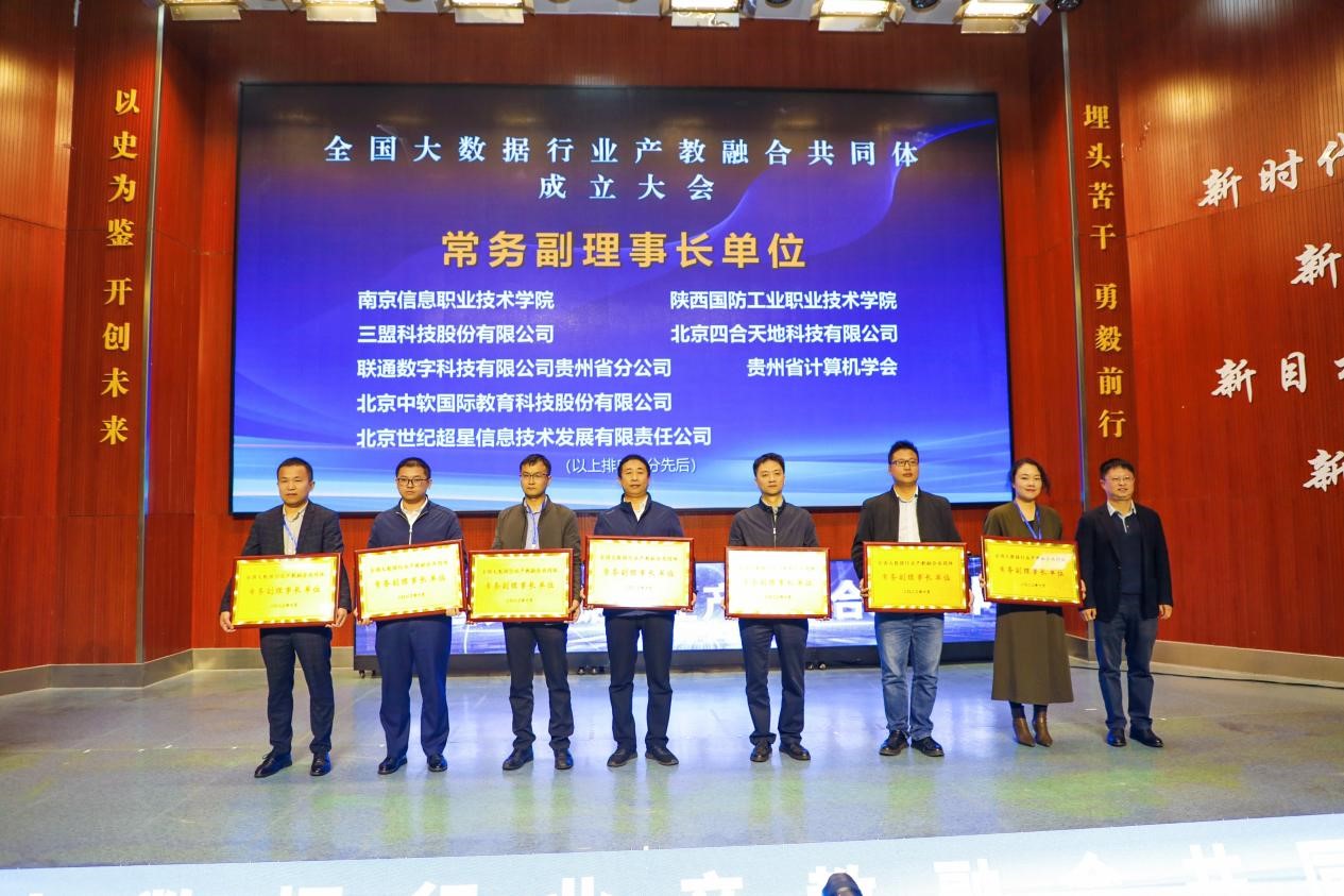 2023年10月11日至10月12日,全国大数据行业产教融合共同体正式成立,由云上贵州大数据产业发展有限公司、贵州大学、贵州轻工职业技术学院牵头,联合相关企业、行业协会、有关院校、科研院所等200多家单位组成了职业教育联合体。我校计算机与软件学院院长郭立文和大数据专业负责人李阳共赴贵州参加此次大会,我校入选常务副理事长单位。