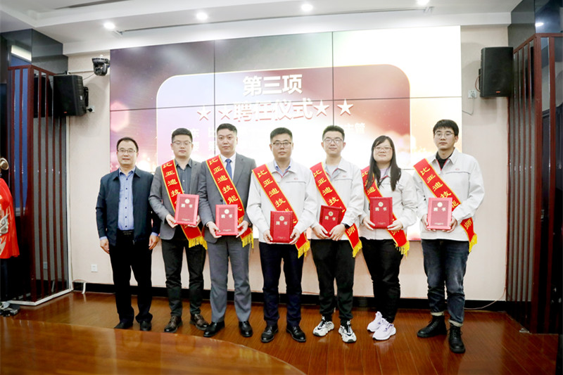 张永军副校长为比亚迪现场工程师学院技能大师工作室制造领域、销售领域、售后领域的技能大师们颁发聘书。