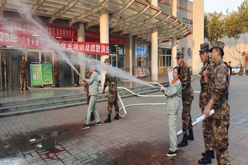 演练现场,师生就消防水带安装、消防水枪灭火、干粉灭火器使用等方面进行了体验演练。活动的最后,采取有奖竞答的形式,向参与活动的人员提问消防安全知识,在活动中理解掌握基本的消防知识和技能,切实增强了同学们的消防安全意识和逃生自救能力。