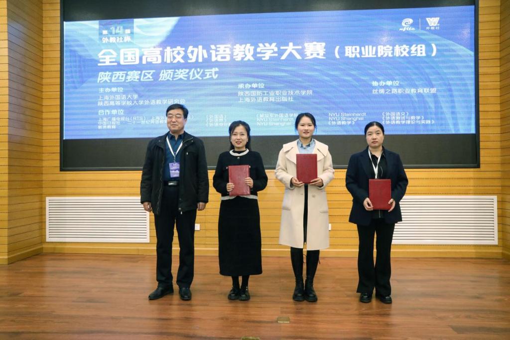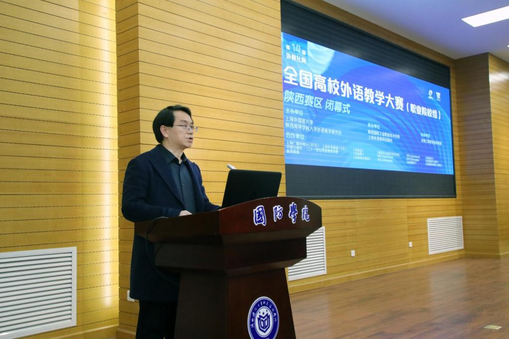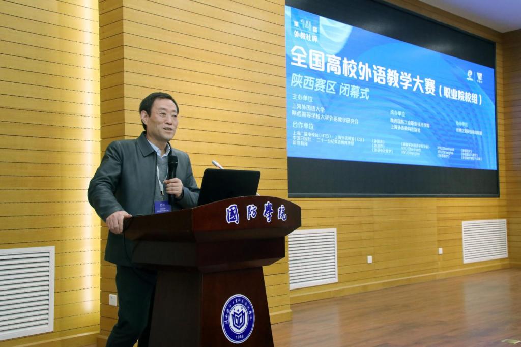 2023年11月25日,第十四届“外教社杯”全国高校外语教学大赛(职业院校组)陕西赛区复赛和决赛(以下简称“教学大赛”)在我校举行。本次大赛由上海外国语大学、陕西高等学校大学外语教学研究会主办,我校与上海外语教育出版社承办。我校副校长张永军出席了比赛活动。此次比赛共有来自全省近12所高职院校报名参赛。