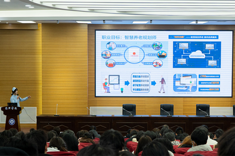 第二阶段的就业赛道决赛主要考查学生的通用素质、岗位能力、发展潜力等。9名高年级学生从自我认知、职业探索、职业定位和成长路径等方面讲述了自己的生涯规划与实践历程。
