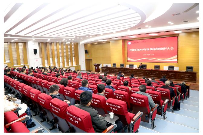 为总结2023年工作,科学规范、客观公正地考核评价各校属单位完成年度工作目标任务情况,充分调动各单位的积极性和创造性,促进学校高质量发展。1月13日,我校在北区教四报告厅召开了2023年度考核述职测评大会,会期为一天。学校领导、全体中层干部以及教代会代表共120余人参加了大会。会议由党委副书记杨聪同志主持。