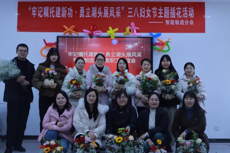 【智能制造学院分会】人间最美三月天,春花烂漫展新颜。在这个生机盎然,充满希望的美好时节,我们迎来了第114个“三八”国际劳动妇女节,为展现我院女职工“自尊、自信、自立、自强”的精神风貌和“铿锵玫瑰”巾帼风采,3月5日下午智能制造学院分会在精艺楼多功能会议室举行了“牢记嘱托建新功 勇立潮头展风采”三八妇女节主题插花活动。