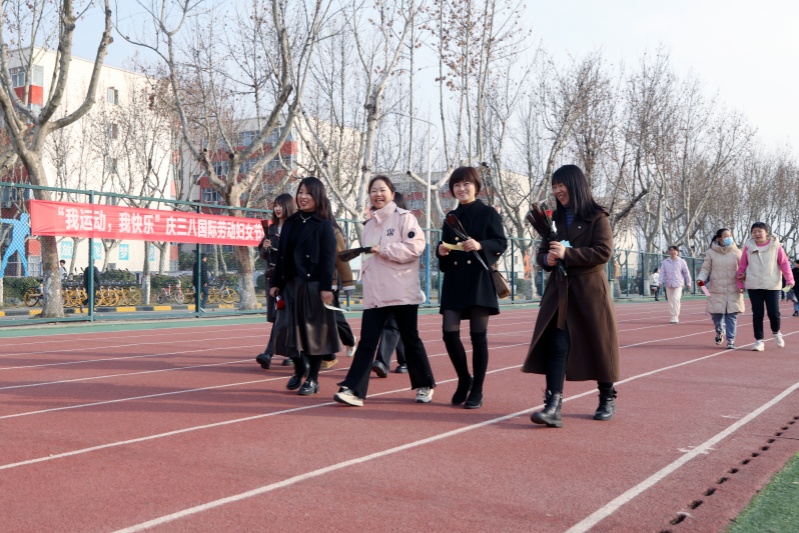 【校工会】3月6日下午,校工会在北校区田径场举办了“我运动我快乐”庆祝“三八”国际劳动妇女节健步走活动。全校女教职工和受邀请的党政工领导近300人参加了此次活动。