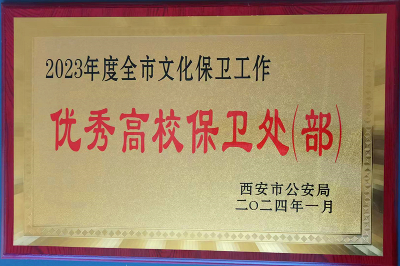 3月15日,在西安市高校稳定安全会议上,西安市公安局发布了《关于表彰2023年度文化保卫工作优秀集体和优秀个人的决定》,表彰2023年度西安市文保工作中涌现出的优秀集体和优秀个人。我校保卫处荣获“2023年度全市文化保卫工作优秀高校保卫处”称号。