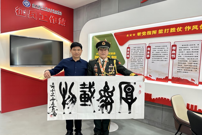 会后,马升云同志向学校赠送了他的书法作品“厚德载物”“军魂”,以勉励学生们坚定信仰、磨砺品格,努力成长为国之栋梁。