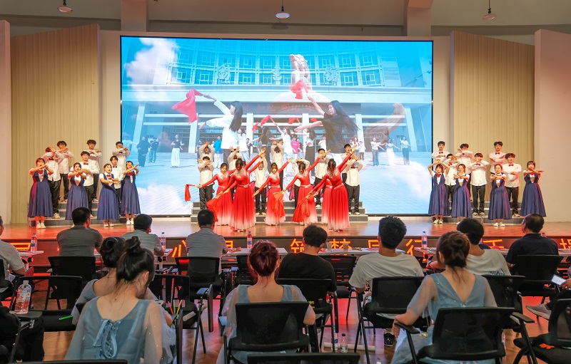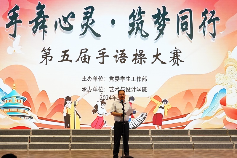 杨聪致辞,他表示大学生心理健康手语操大赛是我校在“以美育人、艺术育心”中的积极实践,大赛以展现团结合作精神、培养人际沟通能力,关注心灵健康、传递爱的感悟为主旨,鼓励大学生勇于创新、善于表达、乐于分享,通过艺术形式表达情绪、彰显美好。大赛连续举办五届以来,在营造“人人关注心理健康”校园氛围、提高大学生心理健康水平,推进我校心理健康教育工作、促进大学生全面成长成才方面发挥了积极的推动作用。