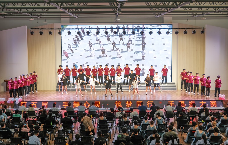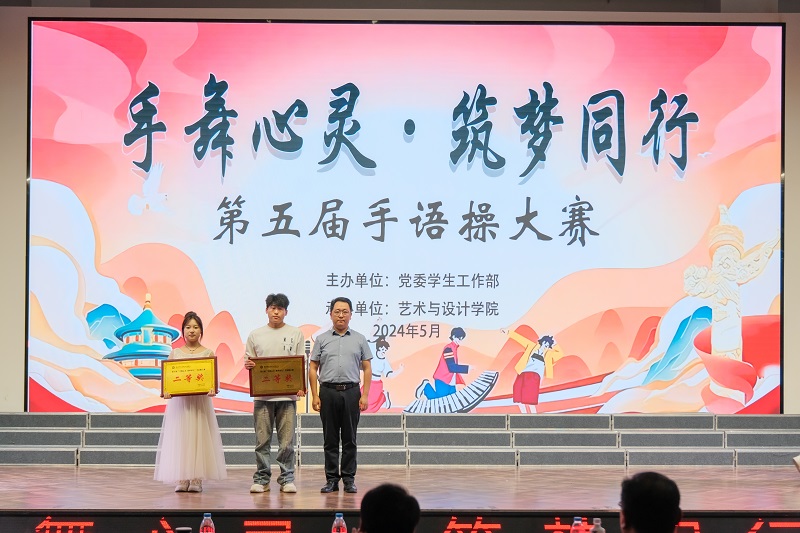 5月22日下午,我校第五届“手舞心灵 筑梦同行”大学生心理健康手语操大赛在博远楼小剧场举行。校党委副书记杨聪,新利体育官方网站部、团委、各二级院部、党委宣传部相关负责人,心理健康教育中心全体人员以及各院系学生代表400余人观看了本次比赛。本次大赛由党委新利体育官方网站部主办,艺术与设计学院承办。