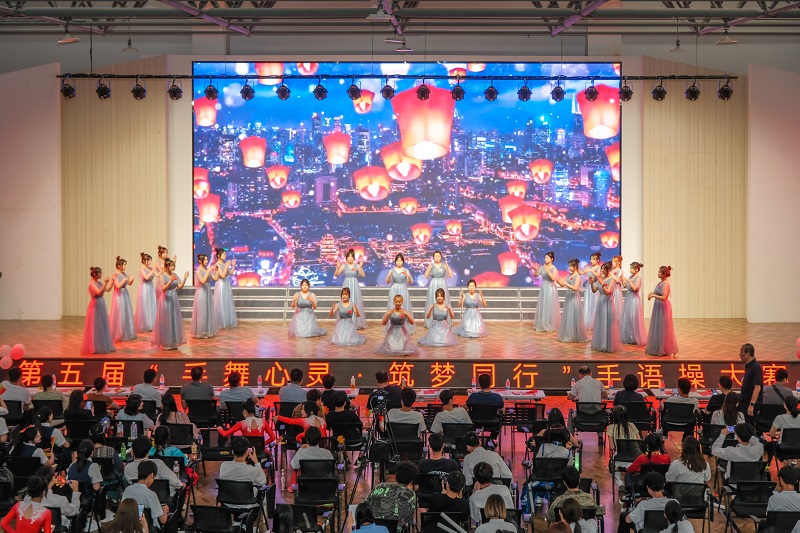 大赛共有11个院部代表队参加,各参赛队伍为观众带来了一场滋养心灵的视听盛宴,优美动人、积极向上的音乐中,参赛同学运用肢体手语,将优雅的动作、悠扬的歌声、曼妙的舞姿、创意的情景融为一体,或激昂、或欢快、或深情、或热烈,浑然一体的手语操节目表演,达到了音乐、形体、心灵、思想的结合与互动、碰撞与升华。参赛同学们用精彩的表演展现了手语之美,体现了生命蓬勃,充分展示出了我校学子健康向上的青春形象。