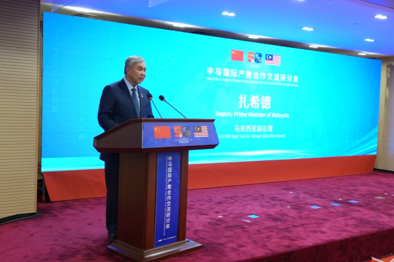 马来西亚副总理扎西德阁下在致辞中表示“中马一家亲”,本次访华期间与国务院总理李强在教育、文化、青年等人文领域达成合作共识,双方将在经贸投资、职业教育、可持续发展等方面开展深入合作。他指出,马来西亚高度重视与中国开展职业教育合作,到2024年底,马来西亚政府将资助2000名马来西亚青年前往中国接受“就业前培训”,期待与各方携手尽快落实中马双学历合作办学项目。