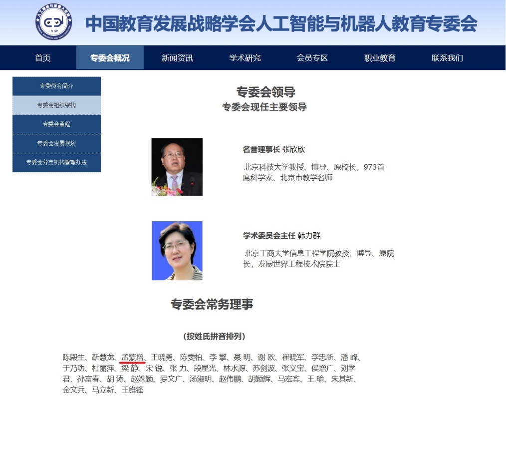 中国教育发展战略学会人工智能与机器人教育专业委员会于2018年9月由中国教育发展战略学会批准成立,为适应人工智能与机器人时代的发展趋势,推动人工智能与机器人教育活动的科学化、规范化,促进人工智能在教育领域的创新应用。