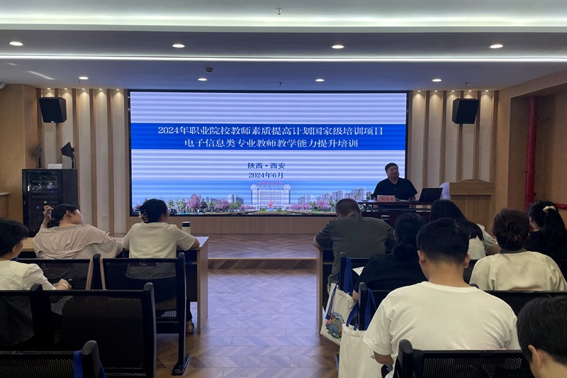6月17日至26日,我校电子信息学院成功举办了陕西省2024年职业院校教师素质提高计划国家级培训项目-电子信息类专业教师教学能力提升培训。来自全省40余所中职学校46名教师参加本次培训。为促使教师更新教育观念,优化知识结构,增强创新精神和实践能力,提升教科研能力,挖掘自我发展潜力。培训聘请了国内职业教育专家、教学能力大赛国赛获奖选手及相关专家、企业技术能手等,以主题讲座、主题交流、现场互动教学、现场参观等方式展开。